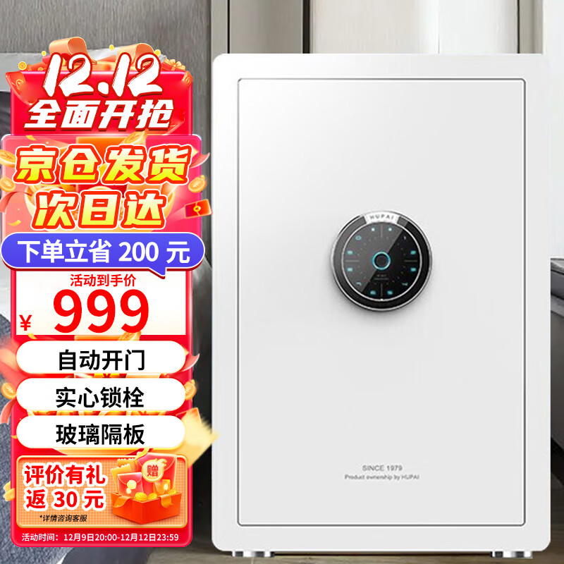 虎牌保险柜家用办公小型指纹密码智能床头保险箱全钢防盗可入墙入柜自动开门保管柜 炫彩系列 雅致白 55cm价格:1049.00元!