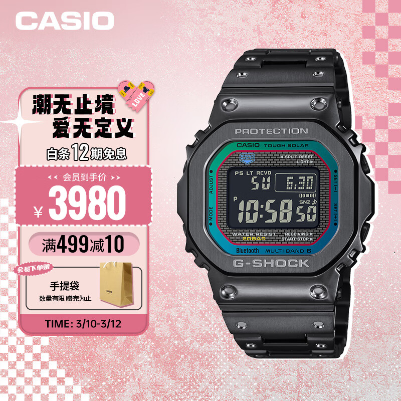 卡西欧(CASIO)运动手表男士小方块G-SHOCK防震电子表礼物GMW-B5000BPC-1价格:3990.00元!