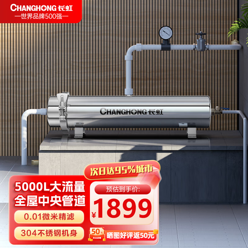 长虹(CHANGHONG)全屋中央管道净水器家用直饮超滤净水机前置农村井水别墅自来水过滤器大流量商 全屋中央管道【5000L大流量】价格:1999.00元!