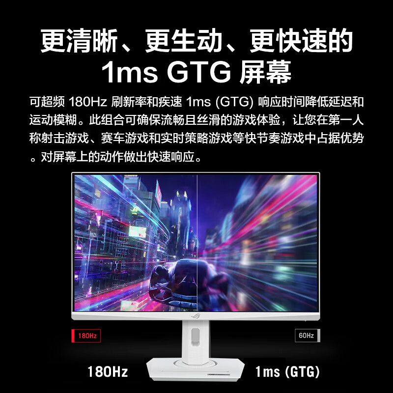 华硕ROG XG27ACS-W绝杀吹雪27英寸2K 144Hz电竞显示器原生180Hz高刷FastIPS 1ms响应G-SYNC兼容HDR400价格:2199.00元!