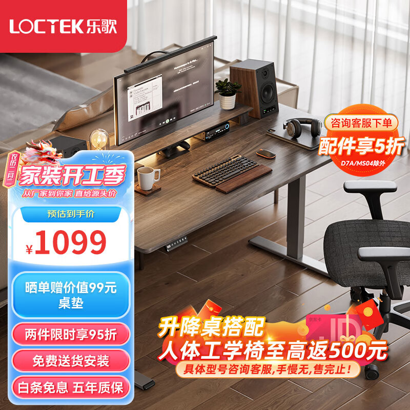 乐歌电动升降电脑桌电竞升降书桌办公学习桌子E2灰胡桃木色价格:1099.00元!