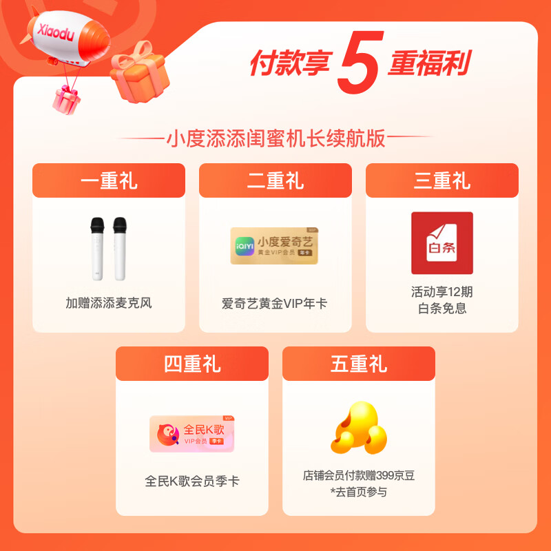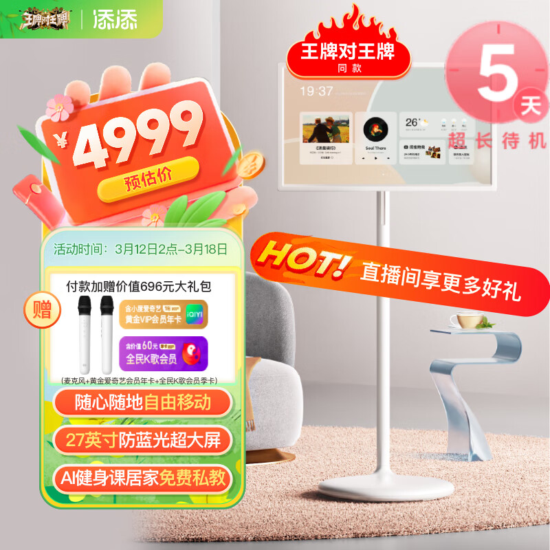 小度添添闺蜜机长续航版 智能平板 电视音响移动随心屏27英寸大屏触控显示器 追剧唱歌健身办公礼物价格:4999.00元!