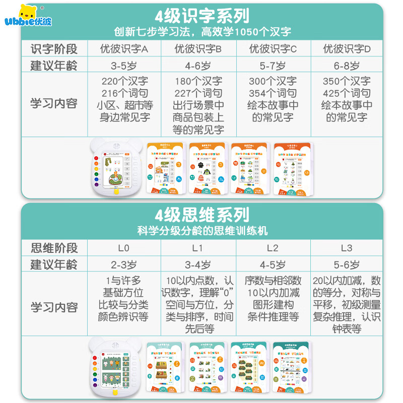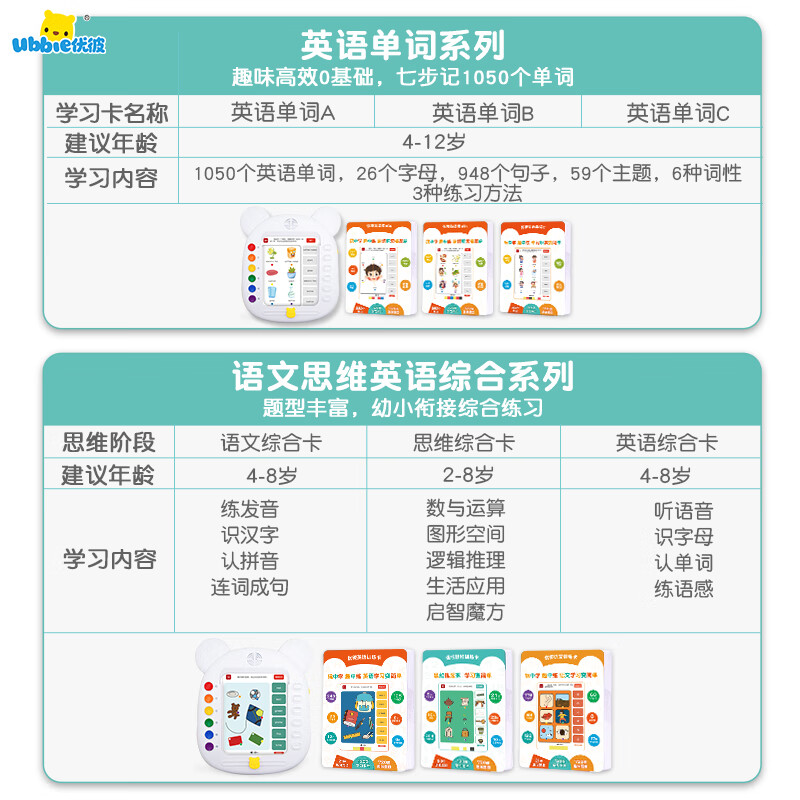 优彼学习训练机识字卡片机思维训练机英语单词儿童玩具新年礼物男女孩价格:1008.00元!