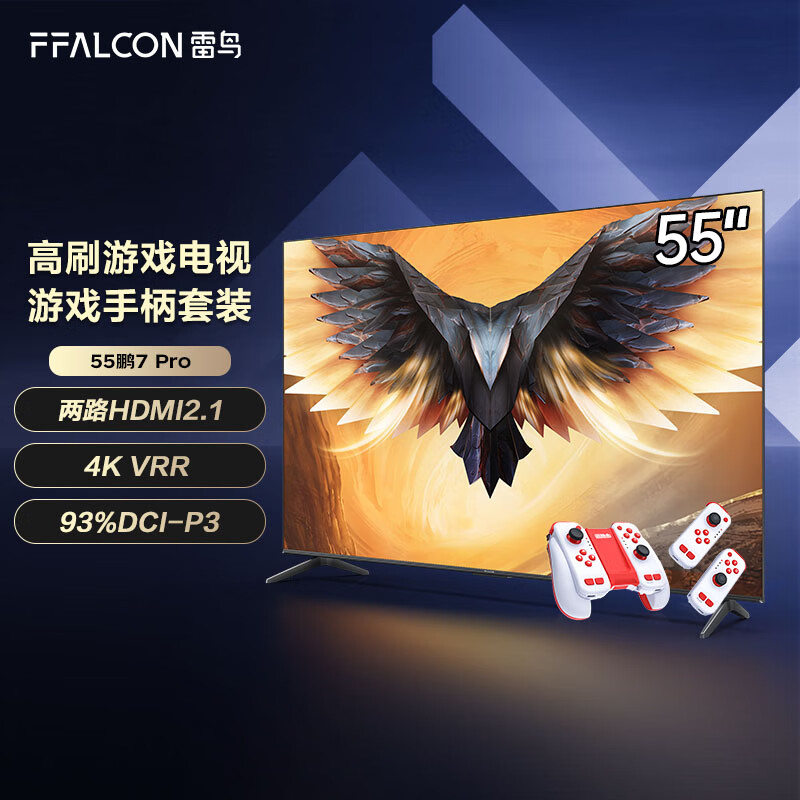 FFALCON雷鸟 鹏7PRO 55英寸游戏电视+运动加加游戏手柄套装 144Hz高刷智慧屏 3+64GB 4K液晶电视机55S575C价格:2848.00元!