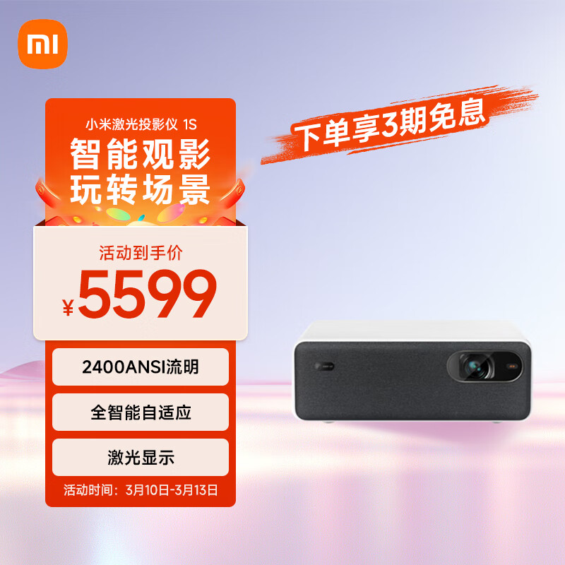 小米激光投影仪 1S 投影仪家用 激光影院 家庭影院(激光显示 全智能自适应 2400ANSI 智能远场语音)价格:5599.00元!