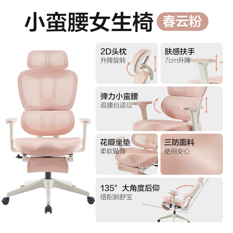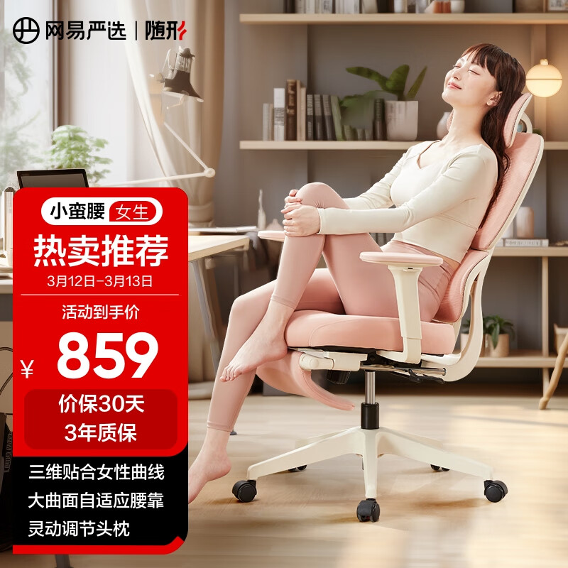 网易严选小蛮腰女生椅春云粉 人体工学电脑椅办公电竞老板椅会议学习座椅价格:1099.00元!