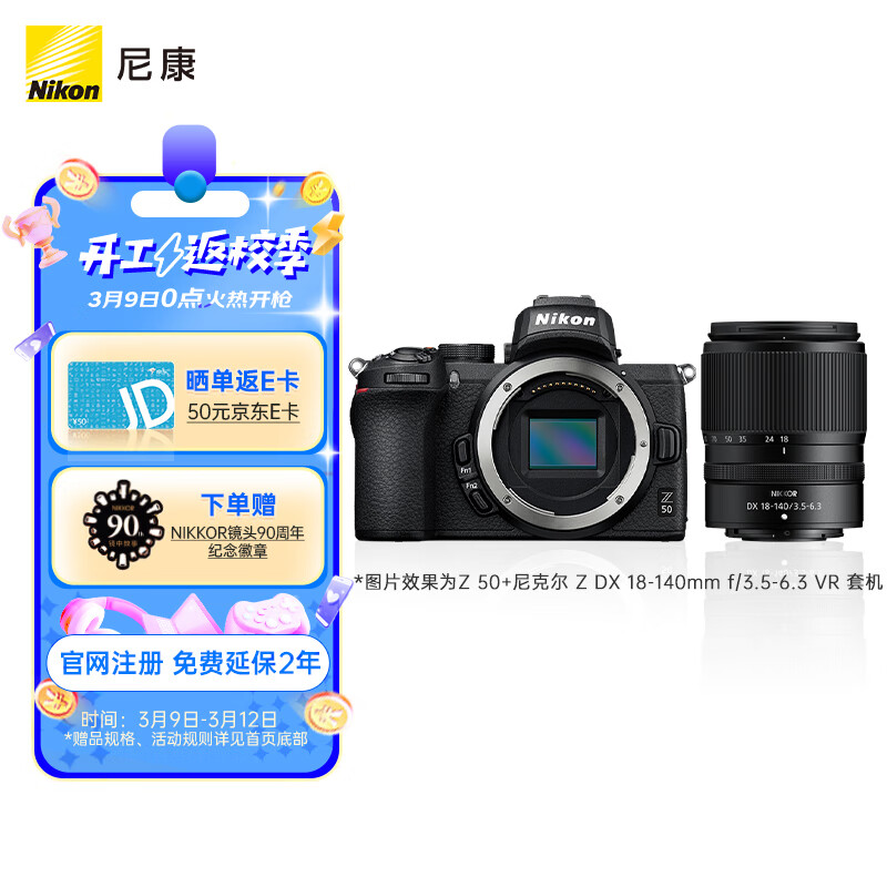 尼康(Nikon)Z 50 微单相机 入门级微单套机 轻便 Vlog(Z DX 18-140mm f/3.5-6.3 VR)价格:9199.00元!
