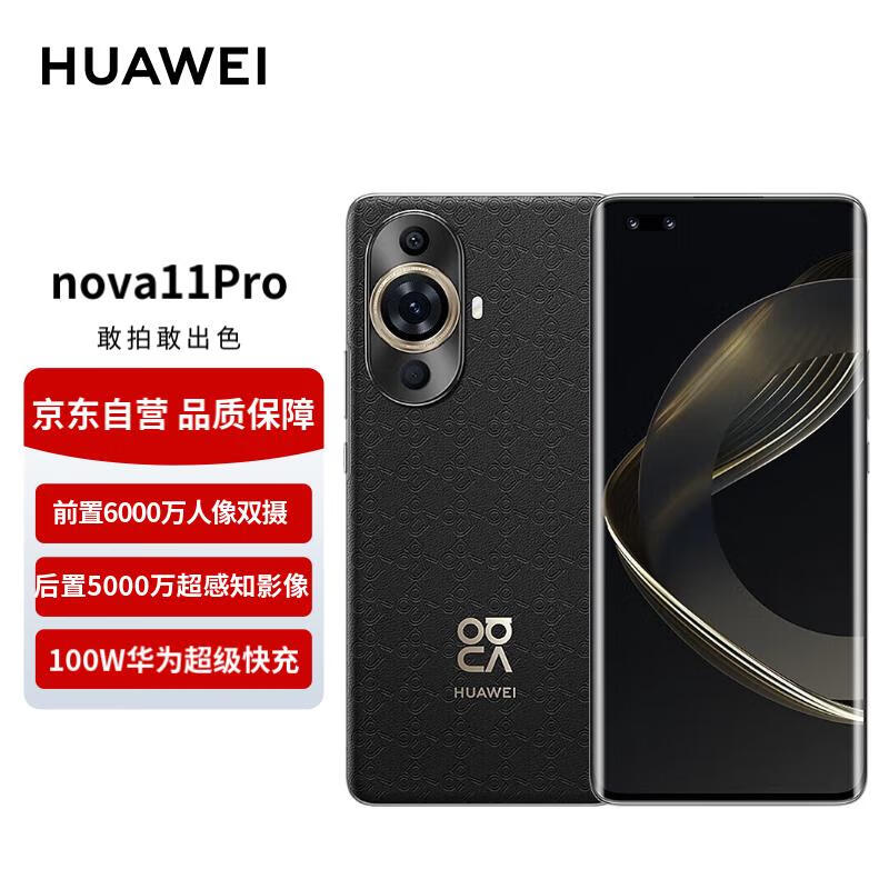 华为nova11Pro手机 超可靠昆仑玻璃 前置6000万人像双摄 256GB 曜金黑 华为鸿蒙智能手机价格:3399.00元!