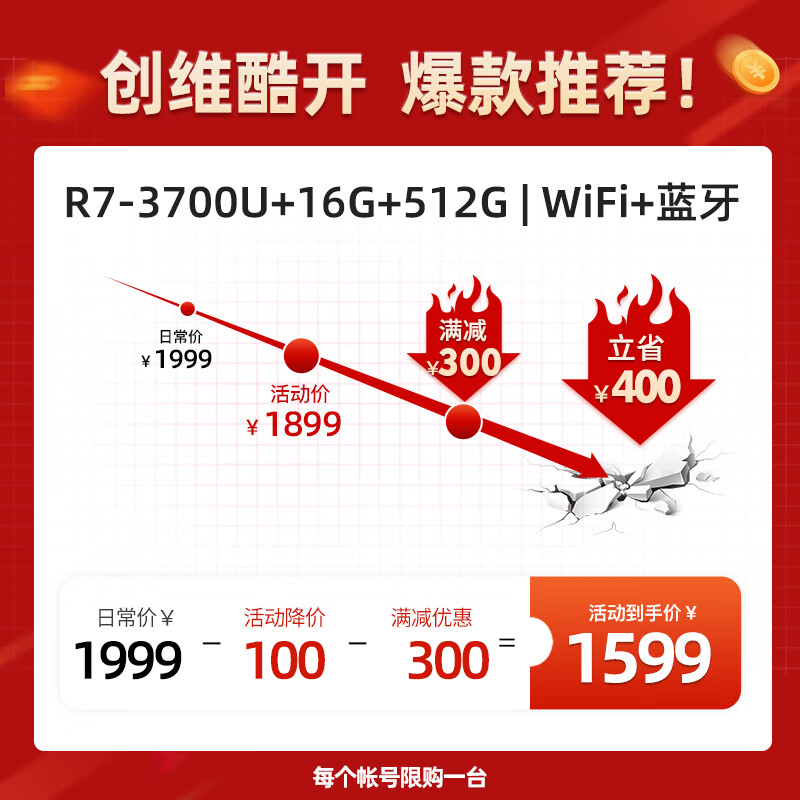 酷开 创维电脑 智享系列 台式电脑商务办公家用mini迷你小主机(AMD锐龙R7-3700U 16G 512G WiFi蓝牙)价格:1599.00元!