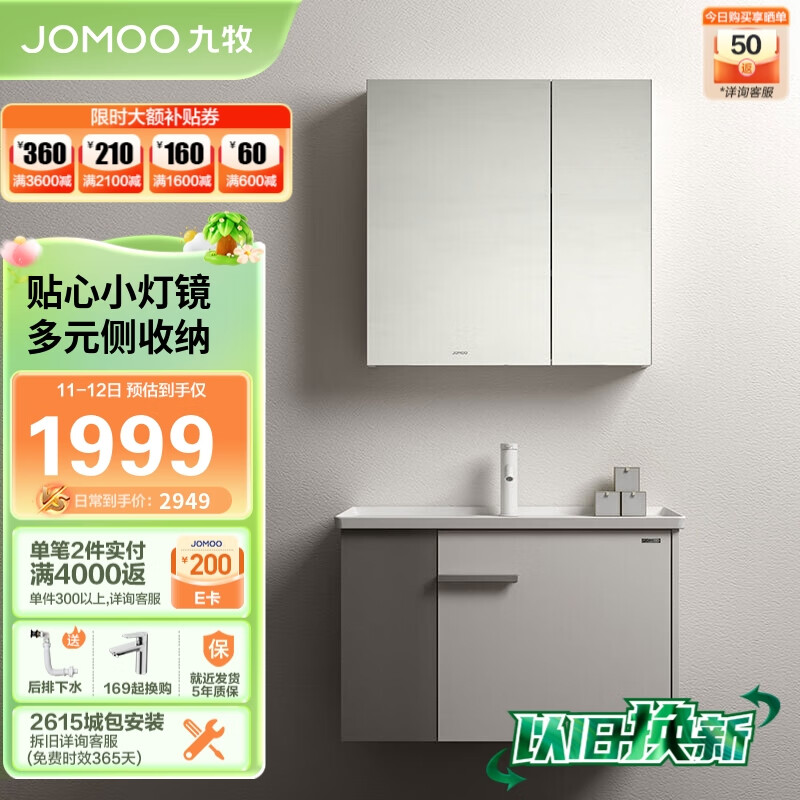九牧(JOMOO)浴室柜陶瓷一体盆奶油风洗脸盆柜组合左侧收纳80cm A2717-147H-1价格:2499.00元!