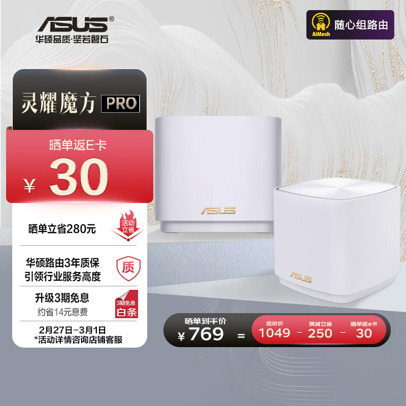 华硕(ASUS)灵耀魔方Pro分布式路由器千兆路由器WiFi6/Mesh家用无线穿墙路由器/全屋路由/Ai路由器价格:1049.00元!