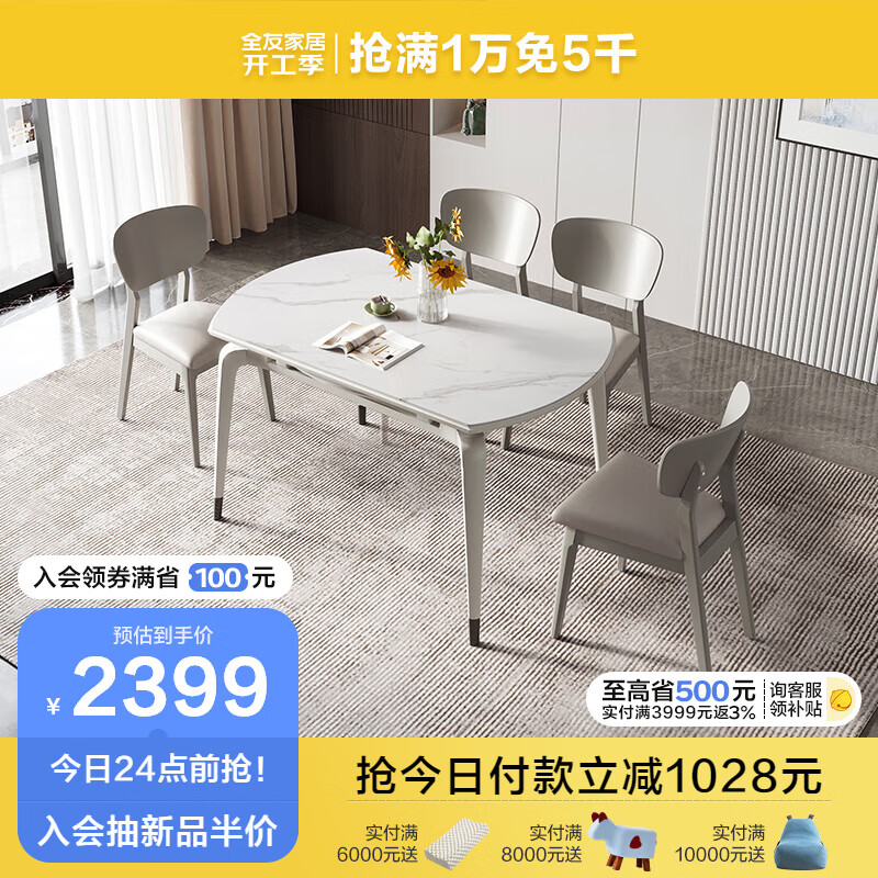 全友家居 餐桌现代简约岩板餐桌可圆可方伸缩功能餐厅家具DW1121价格:3427.14元!