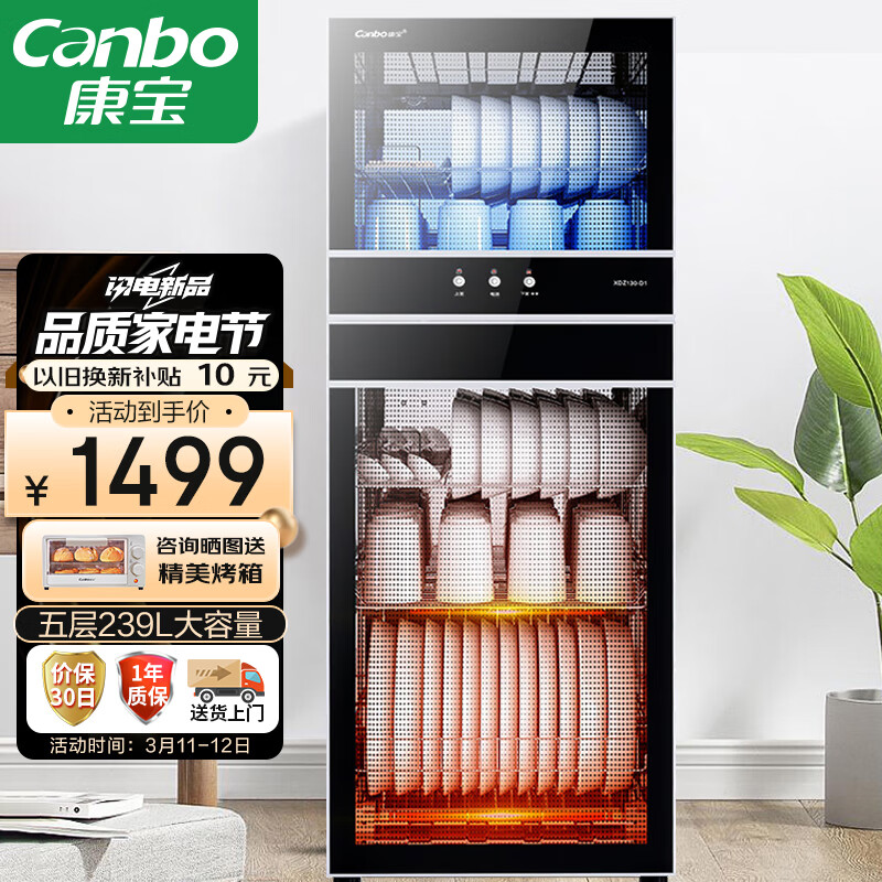 康宝(Canbo)消毒柜 家用 立式消毒碗柜大容量 商用碗筷餐具茶杯柜双门碗柜XDZ239-D1(ZTP350D-1)价格:1499.00元!
