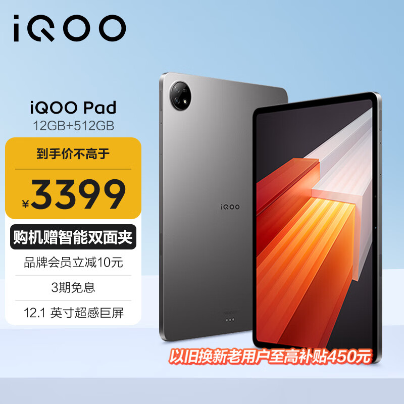 iQOO Pad 12.1英寸平板电脑(天玑9000+旗舰芯 12GB+512GB 144Hz超感巨幕 10000mAh电池)星际灰价格:3399.00元!