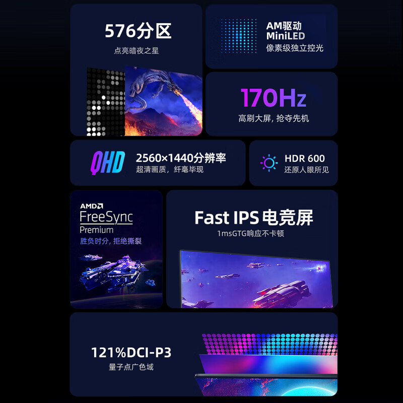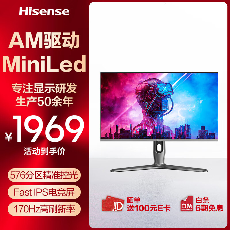 海信27英寸MiniLED 576分区 IPS 170Hz HDR600 1ms响应 2K 旋转升降 电竞办公电脑显示器显示屏27G7H价格:1969.00元!