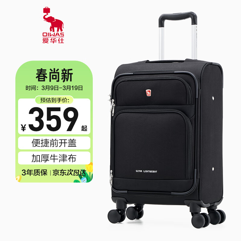 爱华仕牛津布行李箱可登机拉杆箱男出差商务旅行箱女前开盖帆布箱20英寸价格:399.00元!