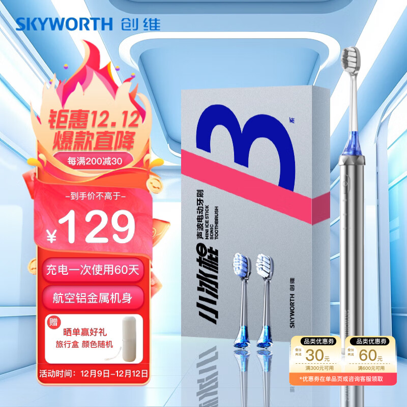创维小冰棍电动牙刷 成人声波震动电动牙刷 情侣款送男友/送女友 冰川银BG31价格:129.00元!