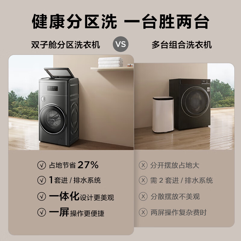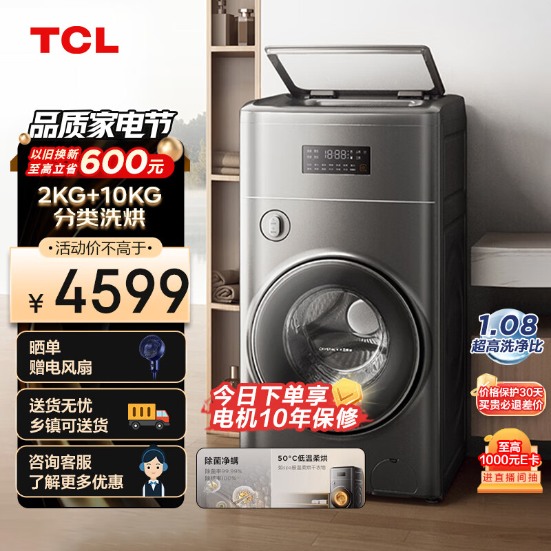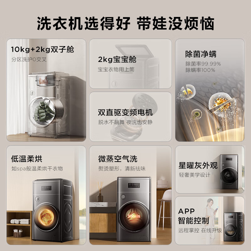 TCL 12KG双子舱·复式分区洗烘一体机T300 母婴分类洗 除菌除螨 直驱变频滚筒洗衣机 G120T300-HDY价格:4599.00元!
