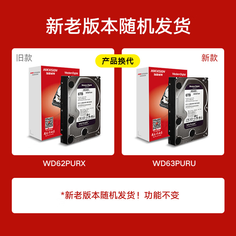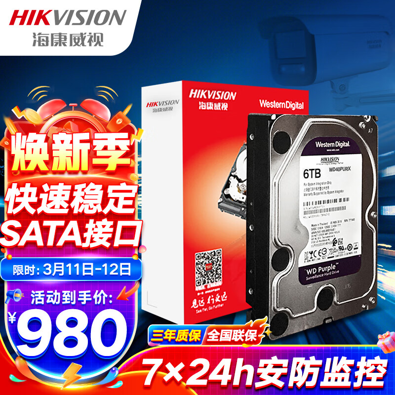 HIKVISION海康威视HIKVISION硬盘 西数WD监控硬盘 紫盘6TB 监控设备套装配件录像机专用监控硬盘价格:980.00元!