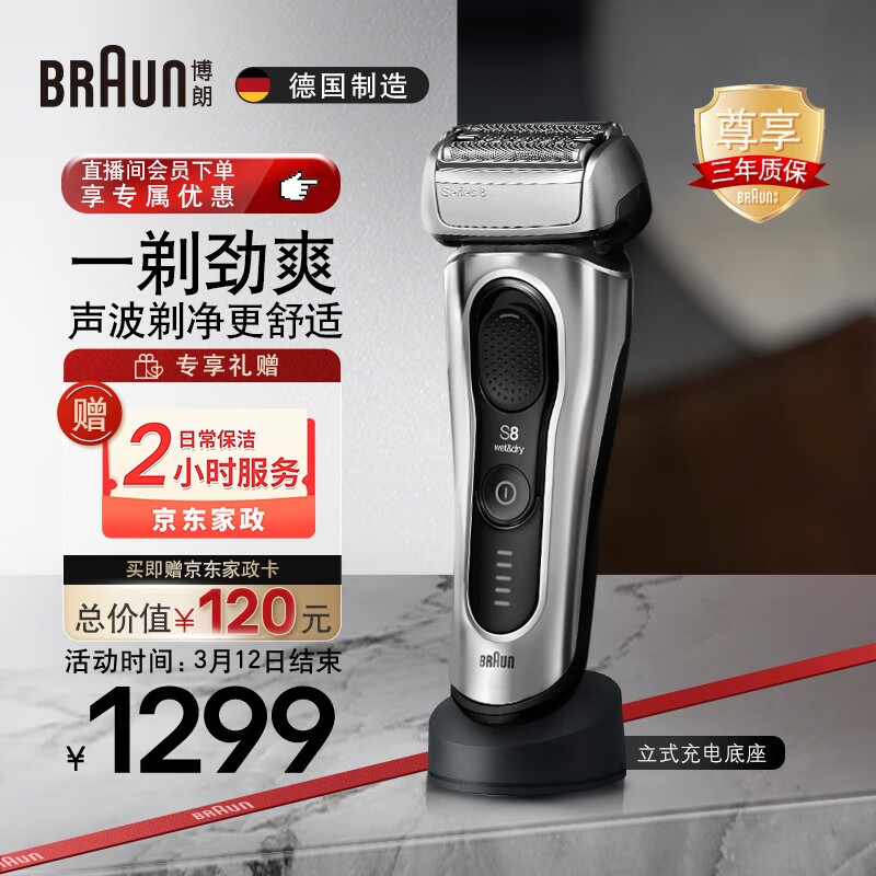 博朗(BRAUN)旗舰8系Pro+8617s电动剃须刀整机德国进口往复式剃须刀电动刮胡刀男士送男友价格:1299.00元!