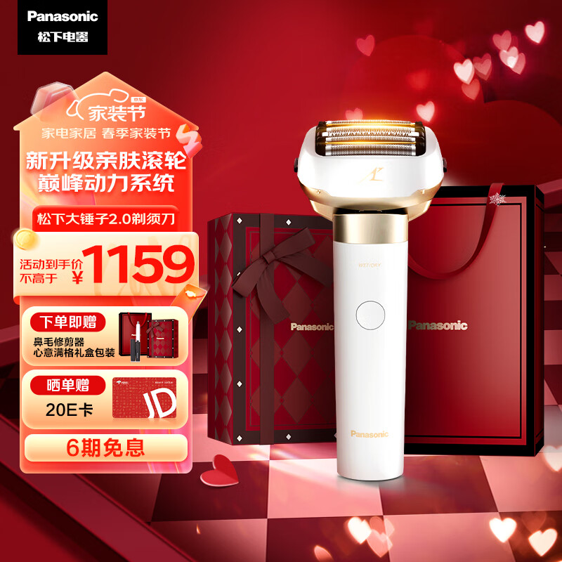 松下(Panasonic)大锤子2.0剃须刀刮胡刀电动往复式小锤子pro磁悬浮马达进口刀头生日男士情人节送礼LM55白价格:1159.00元!