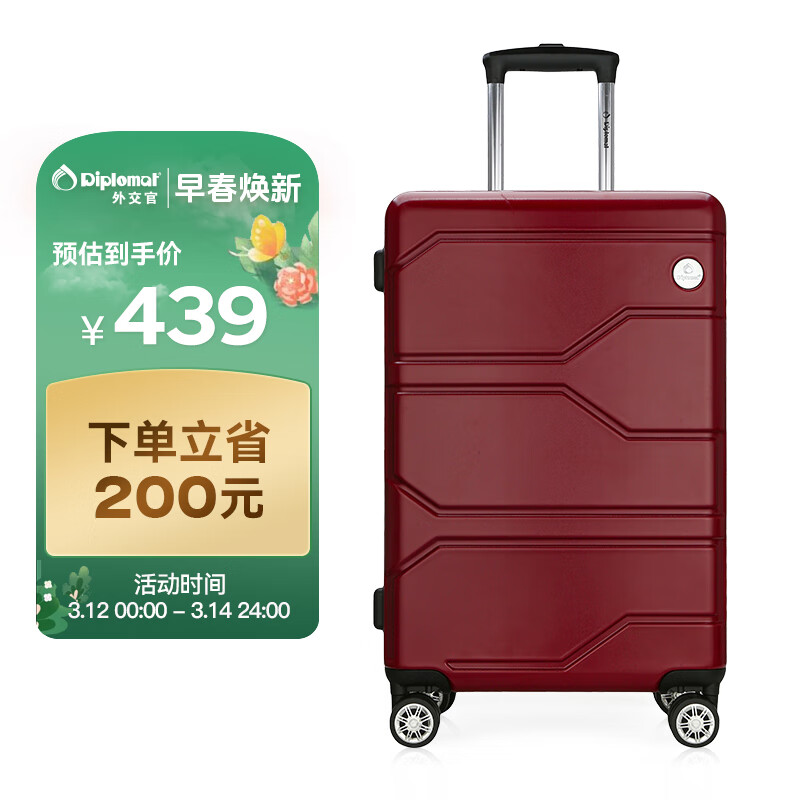 Diplomat外交官商务万向轮拉杆箱男女结婚旅行箱TSA密码行李箱TC-6903红色价格:639.00元!