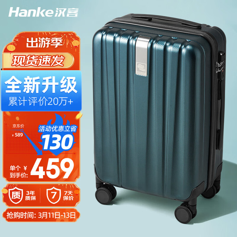 汉客行李箱男拉杆箱女旅行箱80多升大容量26英寸墨绿色密码箱再次升级价格:589.00元!