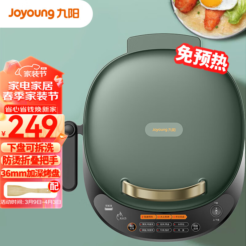 九阳(Joyoung)家用电饼铛 双面加热深烤盘1700W大火力煎烤机烙饼机 下盘可拆易清洗早餐机JK30-GK550价格:249.00元!