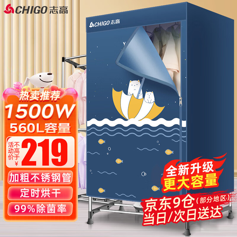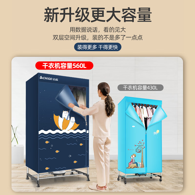 志高(CHIGO)干衣机烘干机家用烘衣机婴儿衣服烘干机衣柜式暖风干衣机大容量承重50斤可定时烘干衣服神器JB31价格:239.00元!