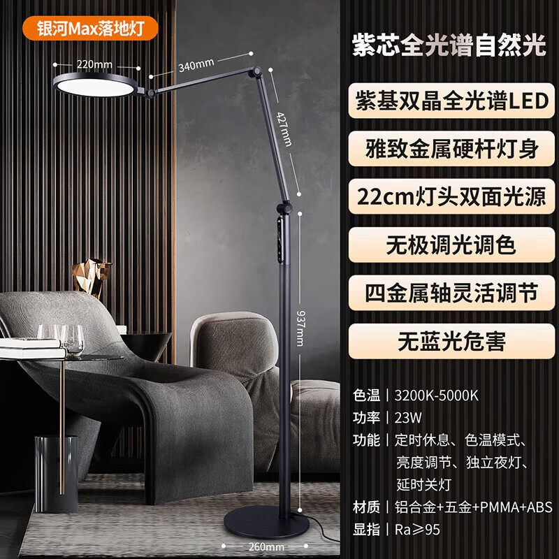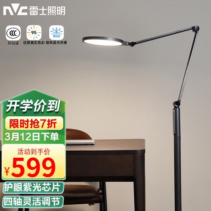 雷士(NVC)护眼台灯阅读儿童学习便携折叠落地台灯宿舍学生七档调光定时价格:856.00元!