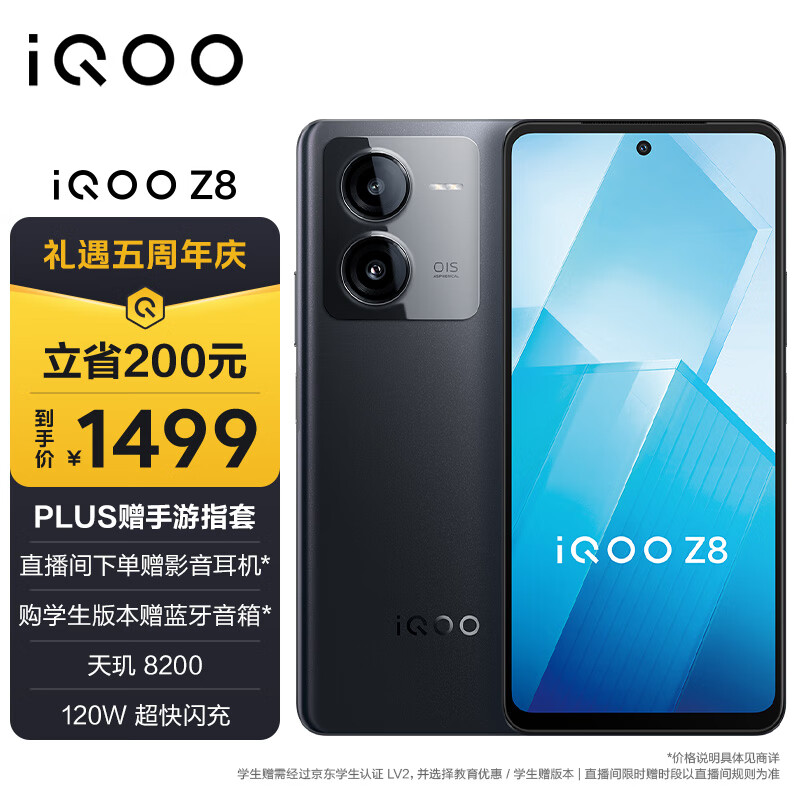 vivo iQOO Z8 8GB+256GB 曜夜黑 天玑 8200 120W超快闪充 5000mAh超长续航 5G手机价格:1699.00元!