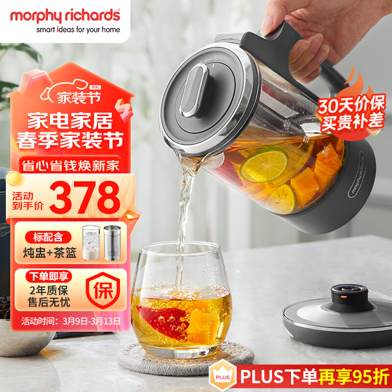 摩飞电器(Morphyrichards)养生壶 分体便携式迷你煮茶器 烧水壶 小型办公室家用 多功能煮茶壶分体式热水壶0.6L MR6085 灰价格:378.00元!