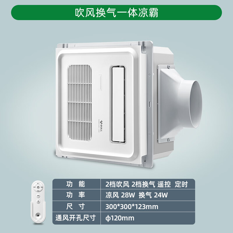 公牛(BULL)凉霸厨房卫生间GL02AYZ 【2档吹风换气 红外遥控定时关闭】价格:399.00元!
