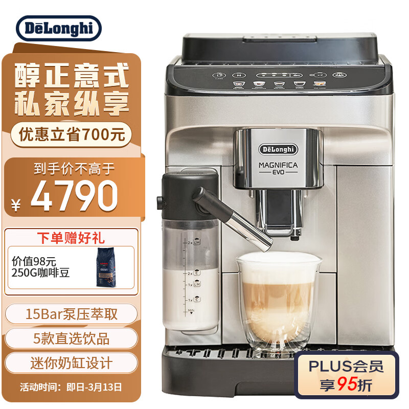 德龙(Delonghi)咖啡机 E系列 意式全自动咖啡机 家用 迷你奶缸 一键奶咖 欧洲原装进口 E LattePlus价格:4790.00元!