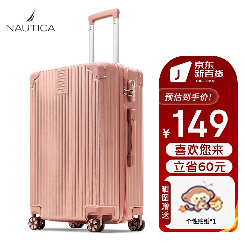 NAUTICA行李箱女士拉杆箱万向轮商务短途旅行箱密码20英寸登机皮箱玫瑰金价格:209.00元!