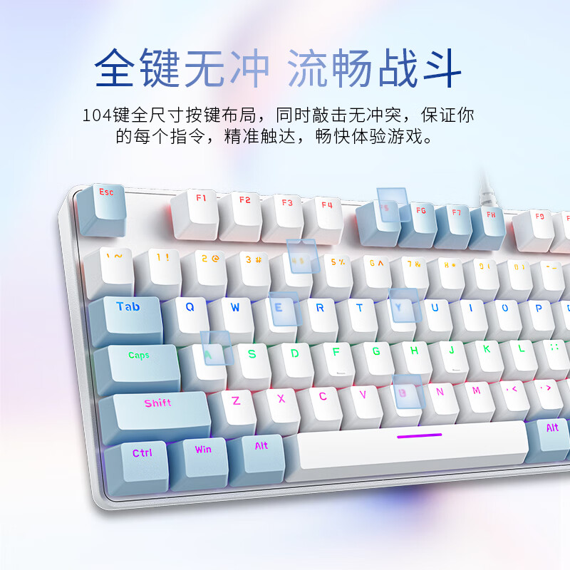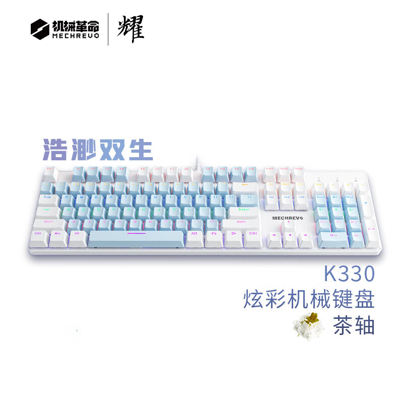 机械革命 耀·K330机械键盘 有线键盘 游戏键盘 金属面板104键混彩背光键盘 全键无冲 电脑键盘 白蓝色 茶轴价格:99.00元!