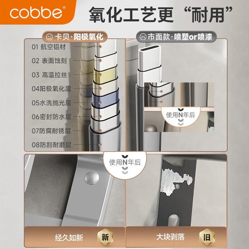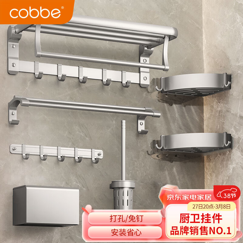卡贝(cobbe)毛巾架免打孔卫生间置物架浴室太空铝浴巾架杆洗手间卫浴挂件套装价格:228.00元!