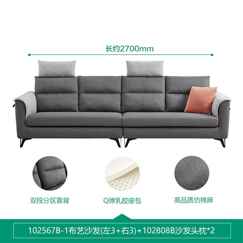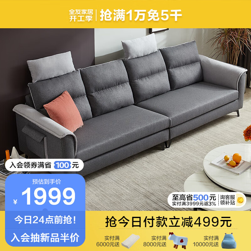 全友家居北欧一字沙发简约四人位沙发客厅小户型布艺直排式沙发102567价格:2498.75元!