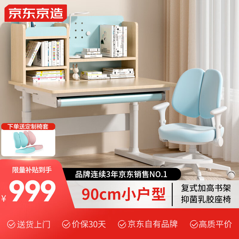 京东京造 儿童学习桌椅 实木学习桌 儿童书桌椅套装 写字桌90cm小户型蓝价格:999.00元!