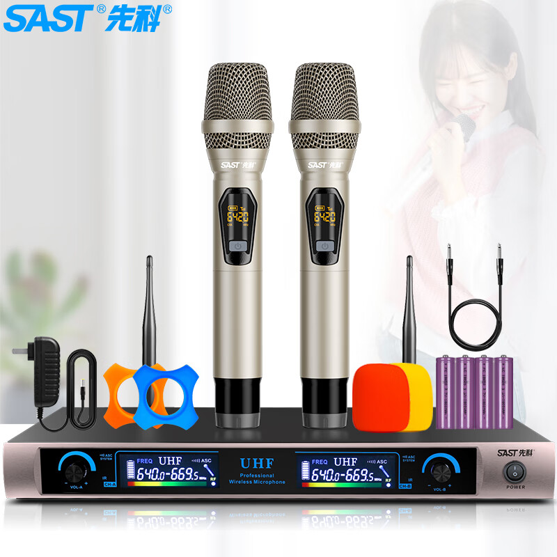 先科(SAST)ok-105B无线话筒一拖二U段可调频无线麦克风专业K歌麦克风家庭KTV演唱会议主持话筒功能按键价格:799.00元!