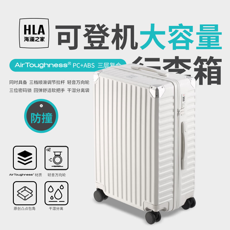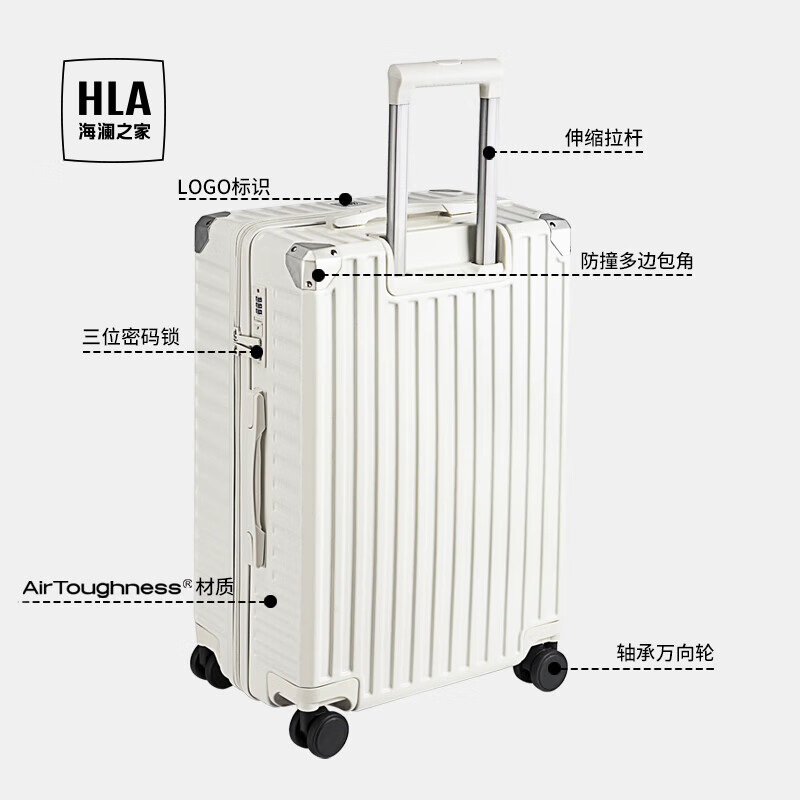海澜之家(HLA)行李箱男学生拉杆箱女旅行登机密码托运皮箱密码箱 象牙白29英寸价格:259.00元!
