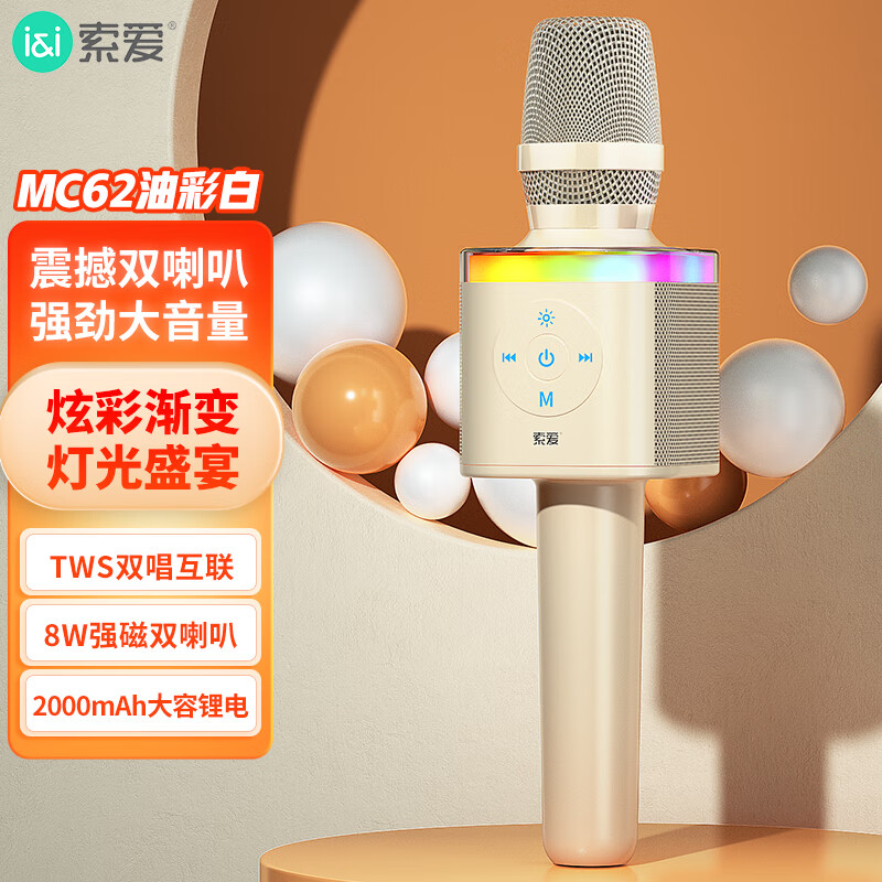 索爱(soaiy) 蓝牙无线麦克风电视K歌儿童话筒音响音箱一体麦克风手机直播家用KTV麦克风话筒 MC62 油彩白礼物价格:199.00元!