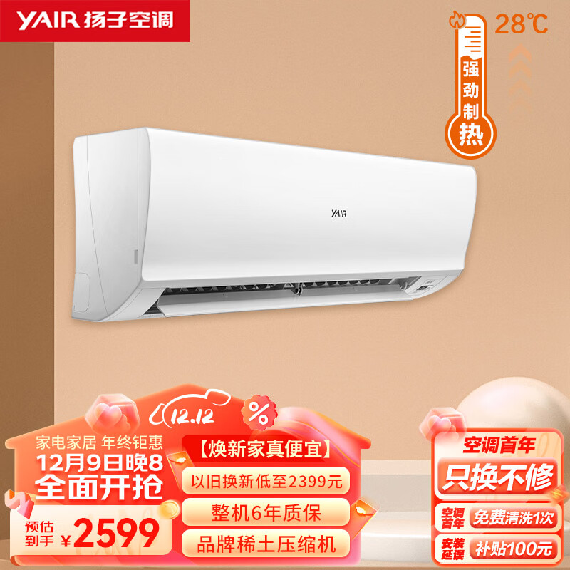 扬子 2匹 新一级能效 变频冷暖 独立除湿 以旧换新 制热取暖 壁挂式客厅卧室挂机 KFR-50GW/08051fB1价格:2699.00元!