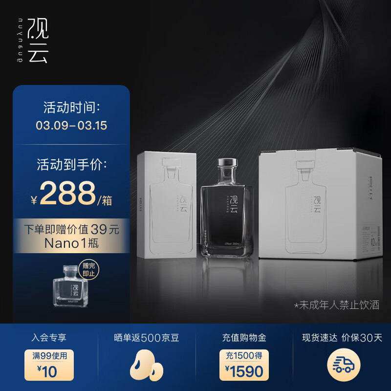 观云MINI 精品小酒 浓香型白酒 42度 200ml*6瓶 整箱装 自饮送礼 礼盒价格:288.00元!
