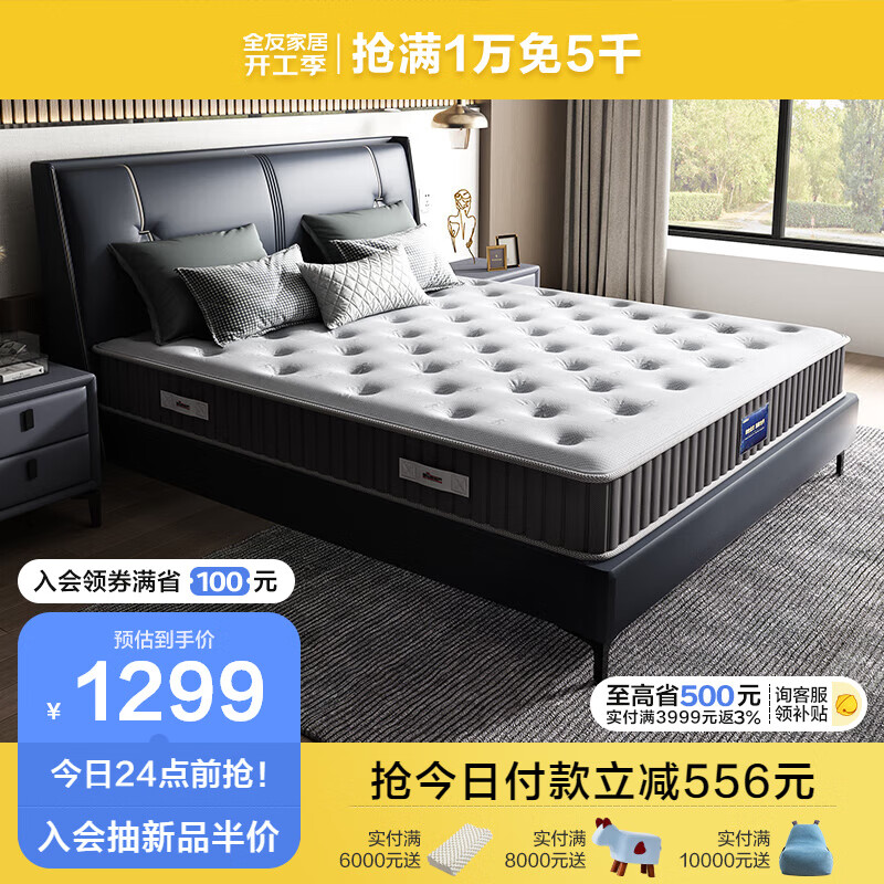 全友家居 乳胶床垫 软硬两用 五区独袋弹簧床垫105169-1价格:1855.71元!