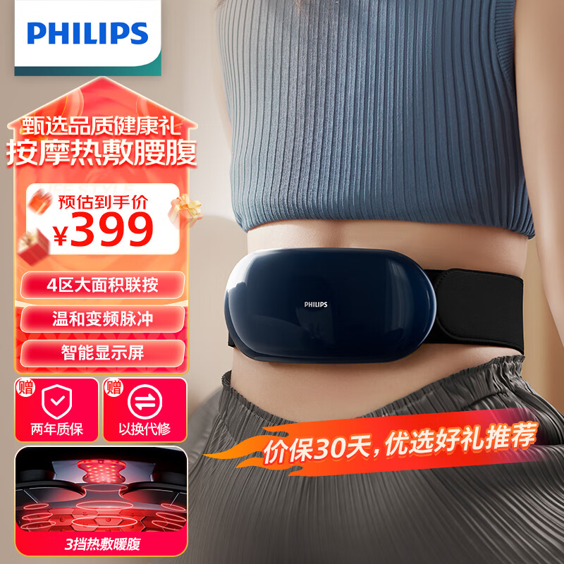 飞利浦(PHILIPS)腰部按摩器按摩仪 腰带多功能物理推揉 多点位变频按敷腰腹部按摩仪 实用高端礼品3501B价格:399.00元!