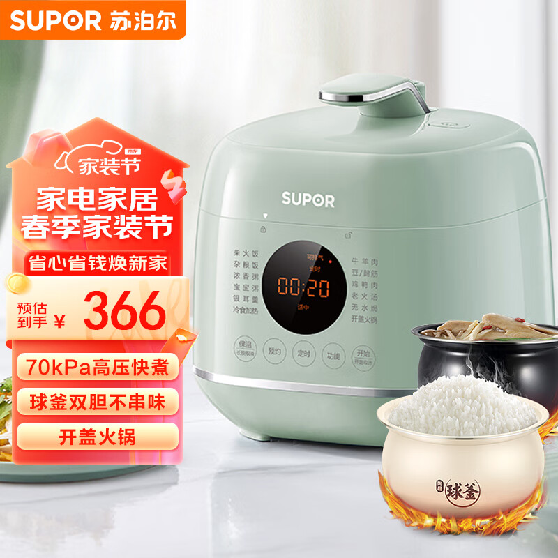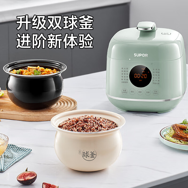 苏泊尔(SUPOR)一人食迷你电锅2.3L 家用智能触控面板白陶晶内胆宝宝粥23FC8027Q双胆高压锅1-3人价格:366.00元!