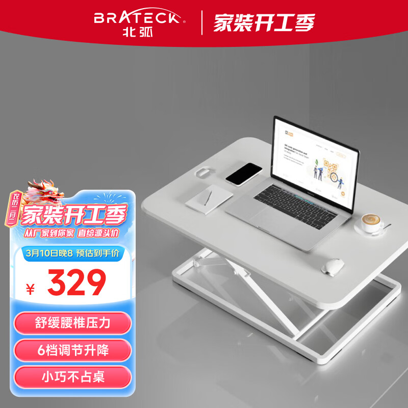 Brateck升降电脑桌 北弧站立办公升降台 站立式电脑升降支架 D250白价格:379.00元!