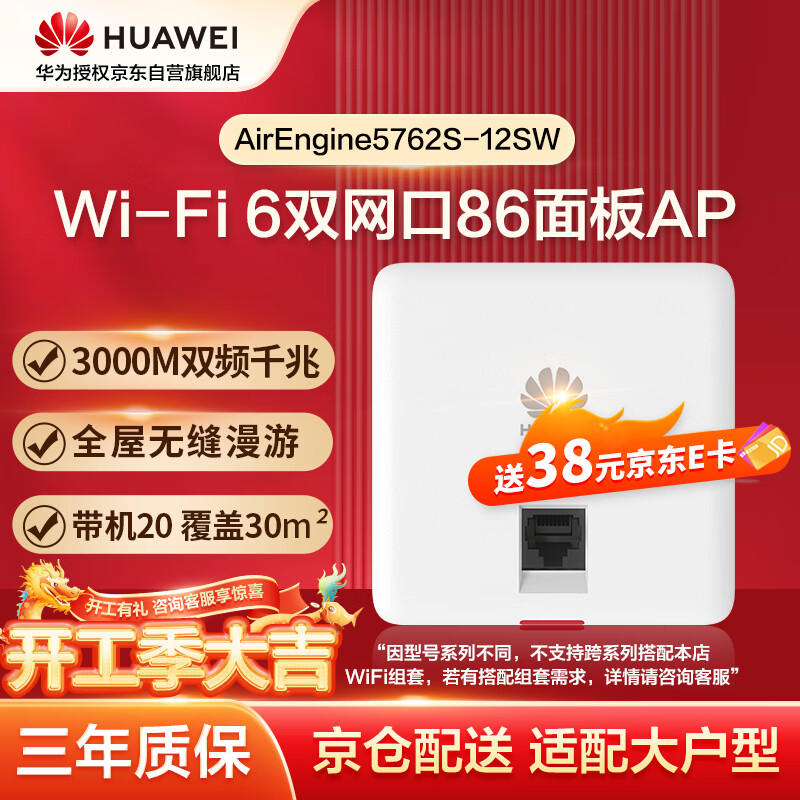 华为企业级无线AP面板全屋wifi6覆盖11ax室内型2+2千兆双频3000M穿墙 2个GE电口 AirEngine5762S-12SW价格:729.00元!