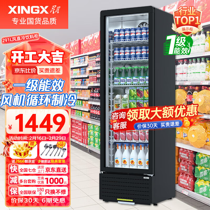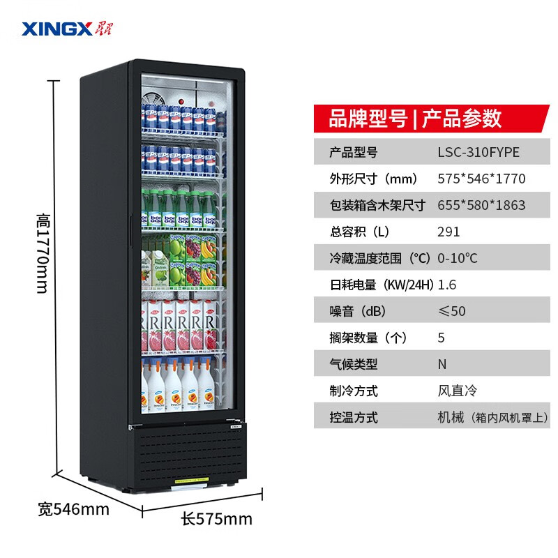 星星(XINGX)展示柜冷藏饮料柜一级能效单门立式冰柜商用保鲜冰箱风冷直冷超市便利店陈列柜啤酒水果柜 风直冷减霜1级能效291升LSC-310FYPE价格:1449.00元!